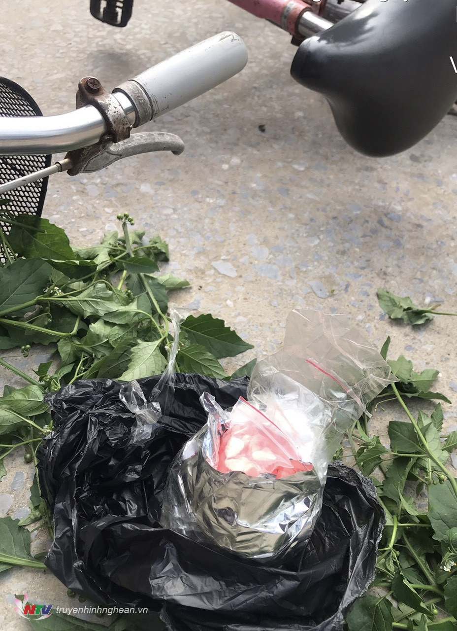 | Thời điểm bị bắt, Toàn đang đi giao hàng bằng xe đạp, 1.000 viên thuốc lắc được ngụy trang dưới lớp rau củ để trong giỏ xe đạp. |