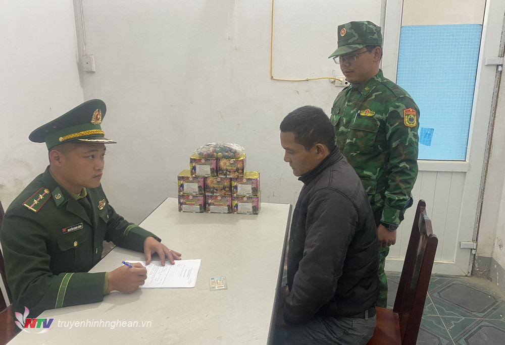 Theo đó, vào khoảng 20 giờ 30 phút ngày 3/1, phòng Phòng chống ma tuý và tội phạm (BĐBP Nghệ An) phối hợp với Đồn Biên phòng Keng Đu phát hiện, bắt quả tang đối tượng Phùng Văn Linh, sinh năm 1987, quê quán xã Thanh Tường, huyện Thanh Chương, tỉnh Nghệ An, trú quán tại Bản Keng Đu, xã Keng Đu, huyện Kỳ Sơn, tỉnh Nghệ An đang có hành vi tàng trữ pháo nổ.