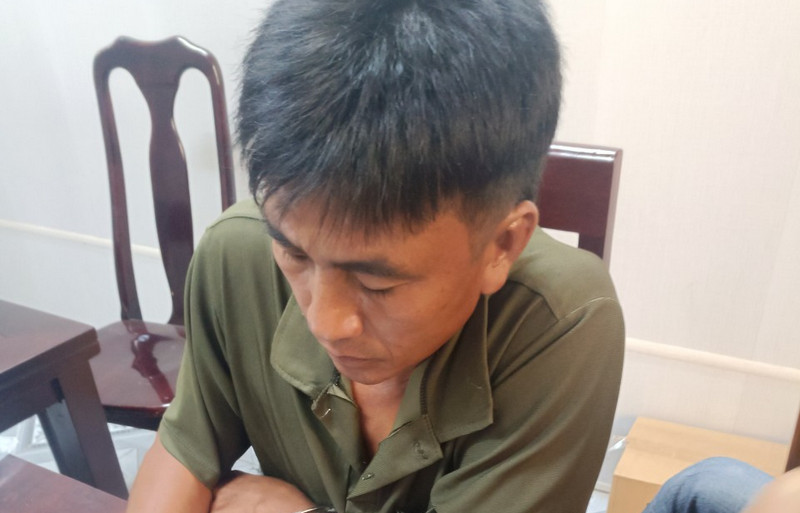 | Đối tượng Lang Văn Quyết cùng tang vật tại cơ quan Công an. |