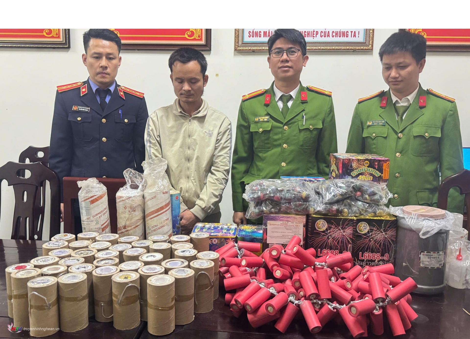Cùng ngày, Công an xã Tây Hiếu bắt 1 vụ, 1 đối tượng N.T.L. (sinh năm 2008), trú tại xã Tây Hiếu, là học sinh tại một trường THPT trên địa bàn có hành vi tàng trữ trái phép, thu giữ 200 quả pháo bi và 11 quả pháo tự chế có tổng trọng lượng khoảng 4,8 kg.
