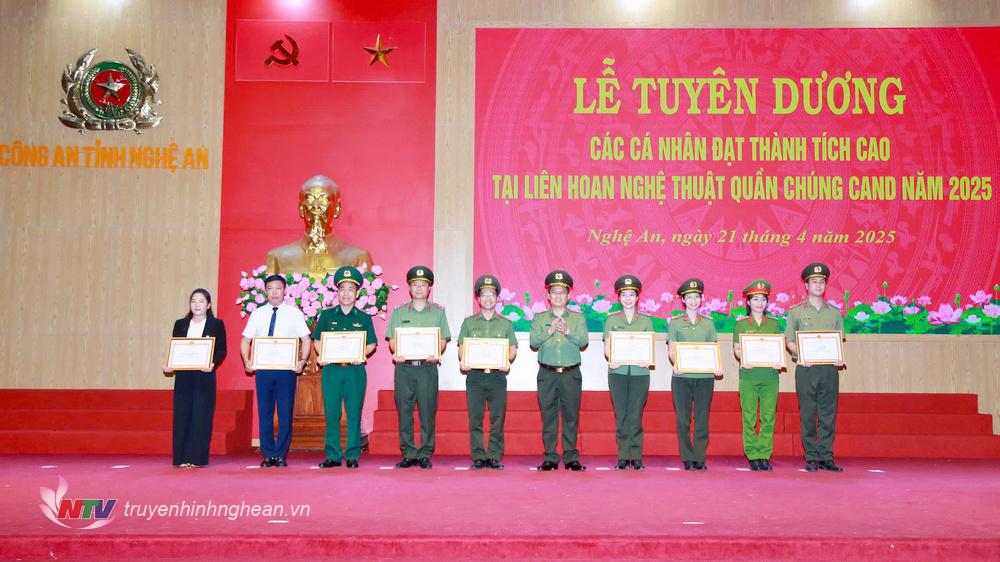 Tại buổi lễ đã có 3 tập thể, 37 cá nhân đạt giải cao tại các cuộc thi, hội thi, liên hoan nghệ thuật và 25 tập thể, 24 cá nhân có thành tích xuất sắc trong công tác bảo đảm ANTT, đấu tranh phòng, chống tội phạm được tuyên dương, khen thưởng.