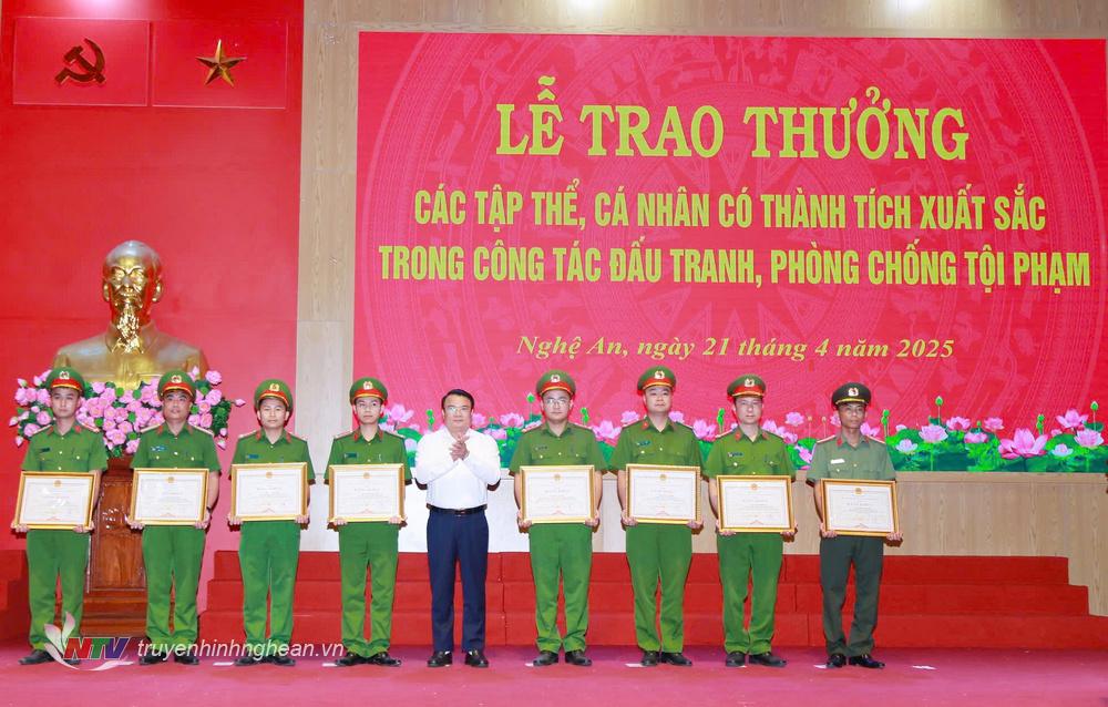 | Đồng chí Phùng Thành Vinh, Phó Chủ tịch UBND tỉnh trao Bằng khen của UBND tỉnh cho các cá nhân đạt thành tích xuất sắc trong công tác đấu tranh phòng, chống tội phạm. |