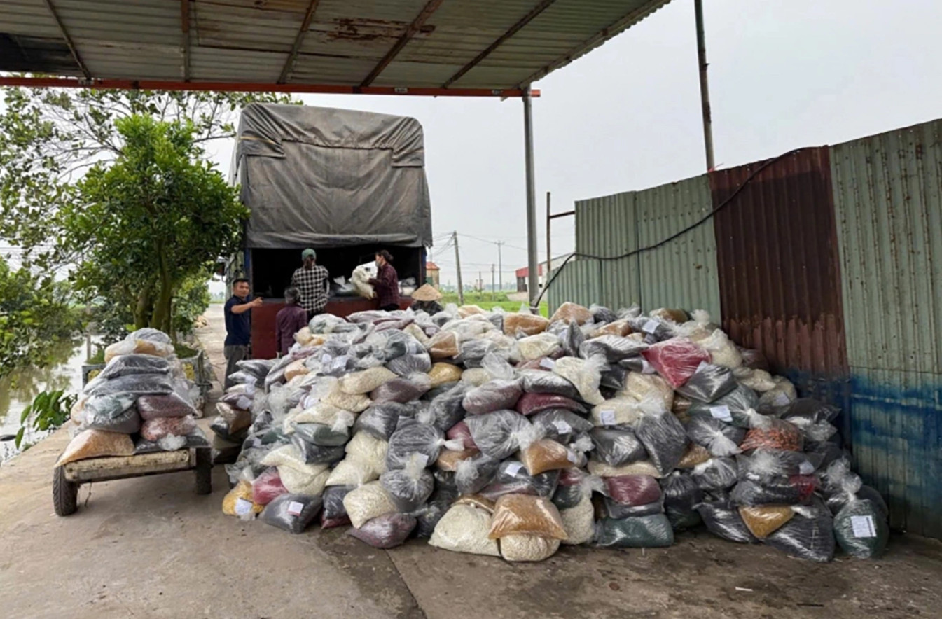| Cảnh sát thu khoảng 100 tấn thực phẩm chức năng giả. Ảnh: Công an cung cấp |