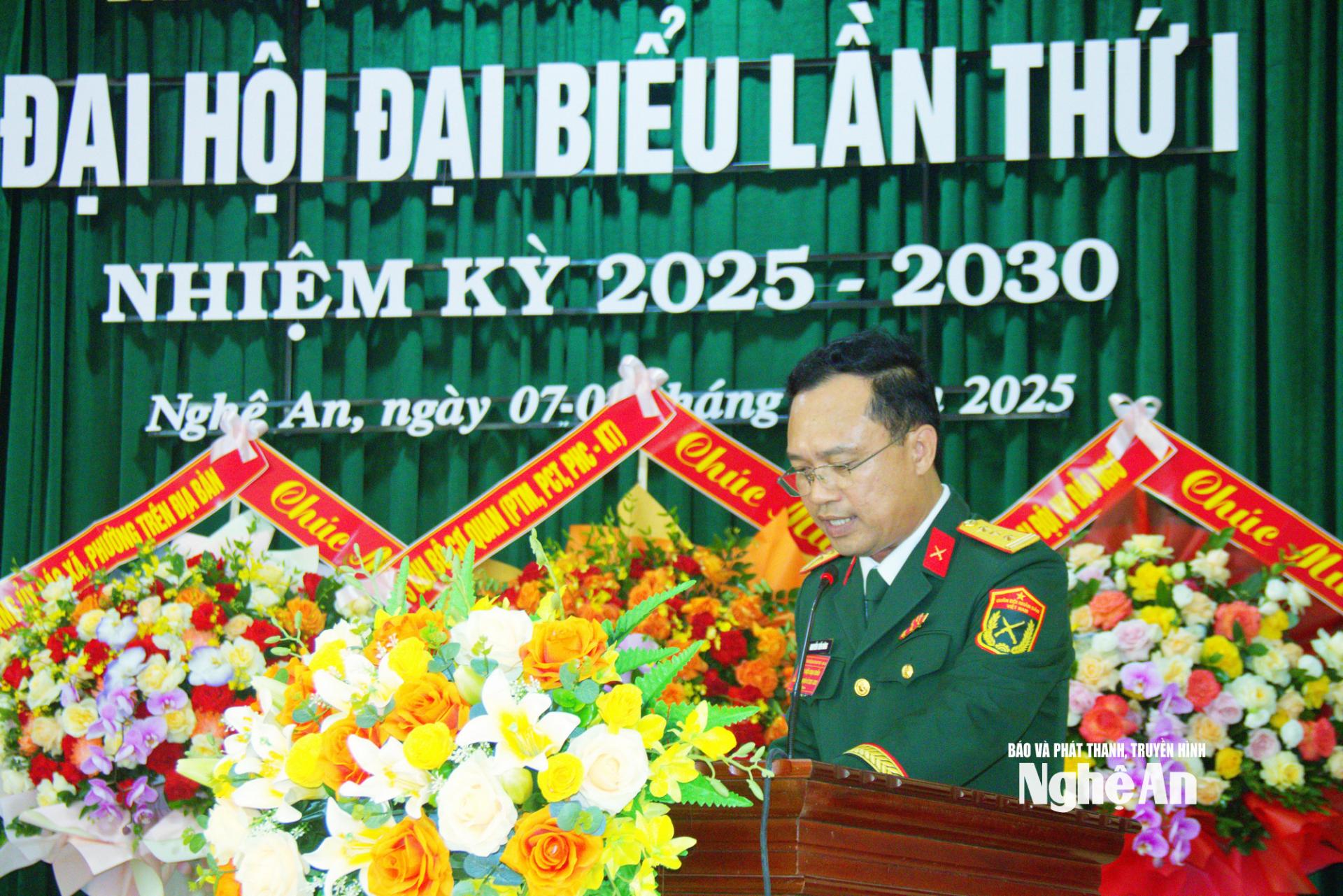 Dự và chỉ đạo Đại hội có Đại tá Nguyễn Văn An – Phó Bí thư Đảng uỷ, Chính uỷ Bộ Chỉ huy Quân sự tỉnh Nghệ An.