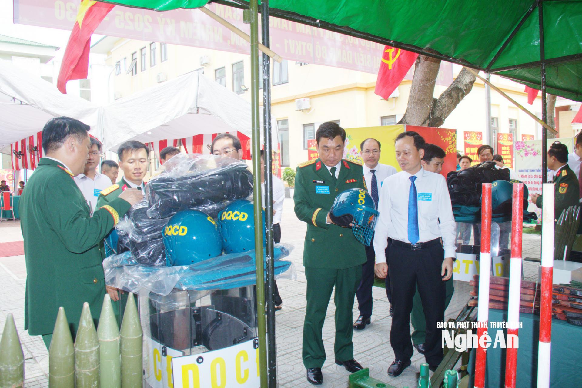 | Các đại biểu tham quan gian trưng bày các mô hình học cụ trong công tác huấn luyện sẵn sàng chiến đấu |