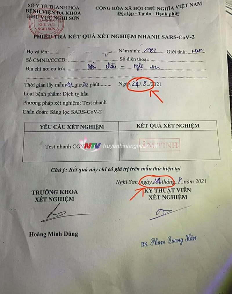 Qua kiểm tra, lái xe là L.N.T (sinh năm 1992), trú tại đường Văn Đức Giai, phường Hưng Bình, thành phố Vinh, không có giấy phép lái xe, không có giấy tờ xe và không có các giấy tờ hợp lệ khi đi ra đường trong thời gian cách ly xã hội.