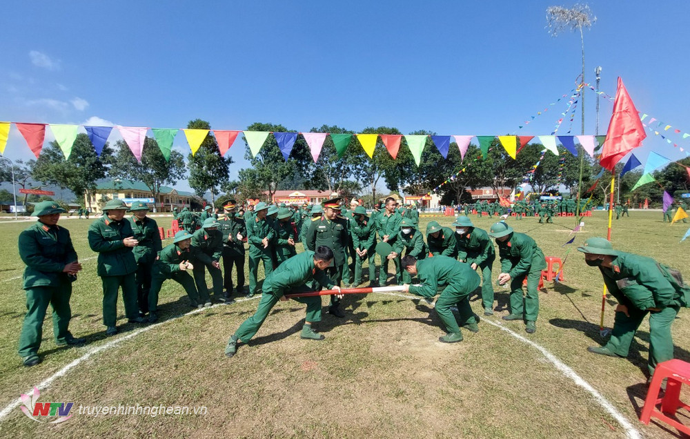 | Cán bộ, chiến sĩ Tiểu đoàn 41 trung đoàn 764 tham gia các trò chơi dân gian tại đơn vị |