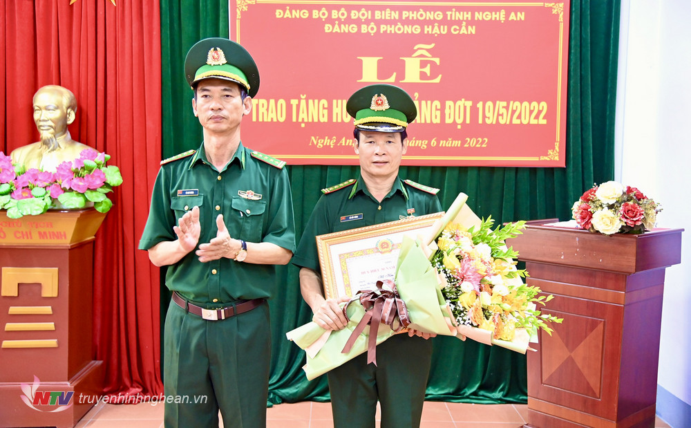 | Đại tá Phạm Văn Đông, Phó Bí thư Đảng uỷ, Chính uỷ Bộ CHQS tỉnh tặng giấy khen cho các tập thể có thành tích xuất sắc trong 10 năm thực hiện Nghị quyết số 623 của Thường vụ Quân ủy Trung ương về lãnh đạo công tác Hậu cần. |