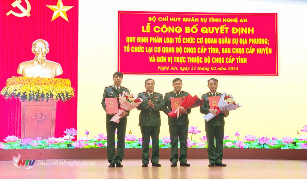 | Thừa uỷ quyền của Bộ trưởng Bộ Quốc phòng, Thiếu tướng Lê Hồng Nhân trao danh hiệu Đơn vị vững mạnh toàn diện “mẫu mực, tiêu biểu" cho Bộ Chỉ huy Quân sự tỉnh Nghệ An. |