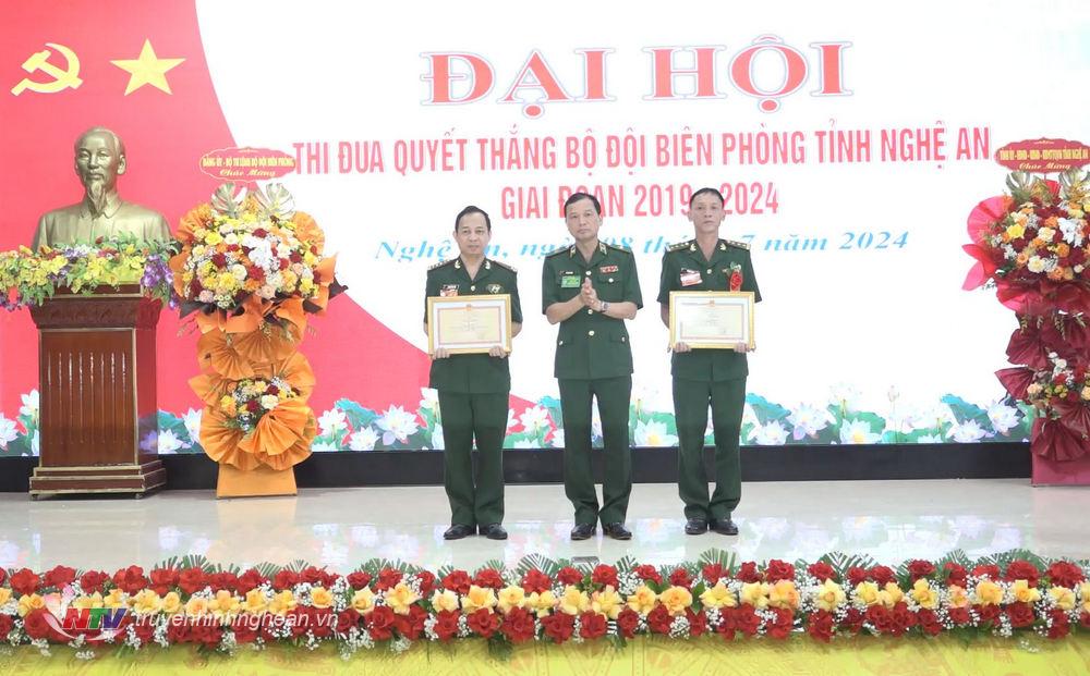 | Bộ Tư lệnh Quân khu trao Cờ thi đua của Thủ tướng Chính phủ cho tập thể Cục Chinh trị và Bộ Chỉ huy Quân sự tỉnh Nghệ An. |
