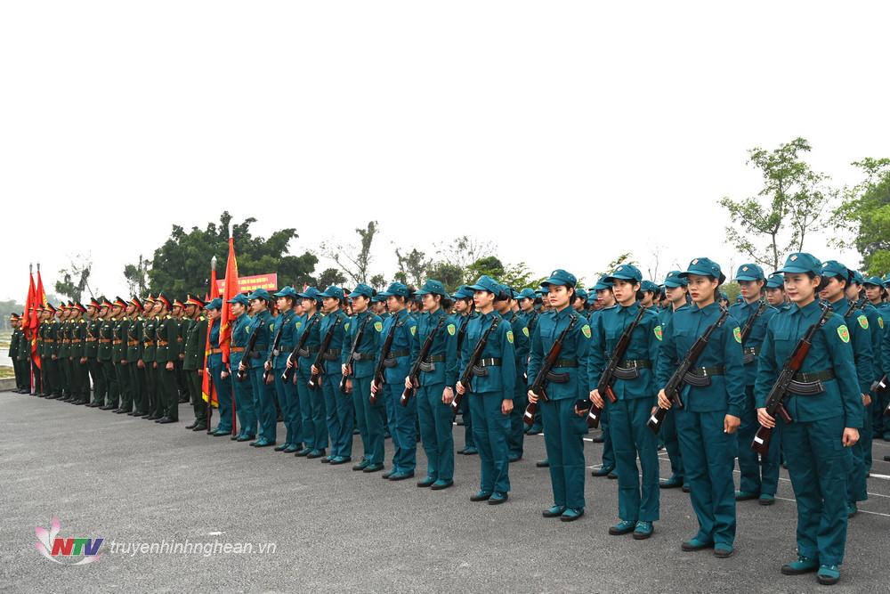 | Các Nữ dân quân tự vệ tham gia luyện tập diễu binh. |