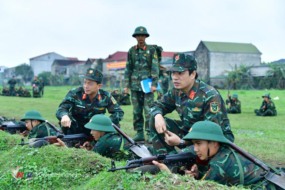 | Lãnh đạo Bộ Chỉ huy Quân sự tỉnh kiểm tra công tác huấn luyện Dự bị động viên tại huyện Diễn Châu. |