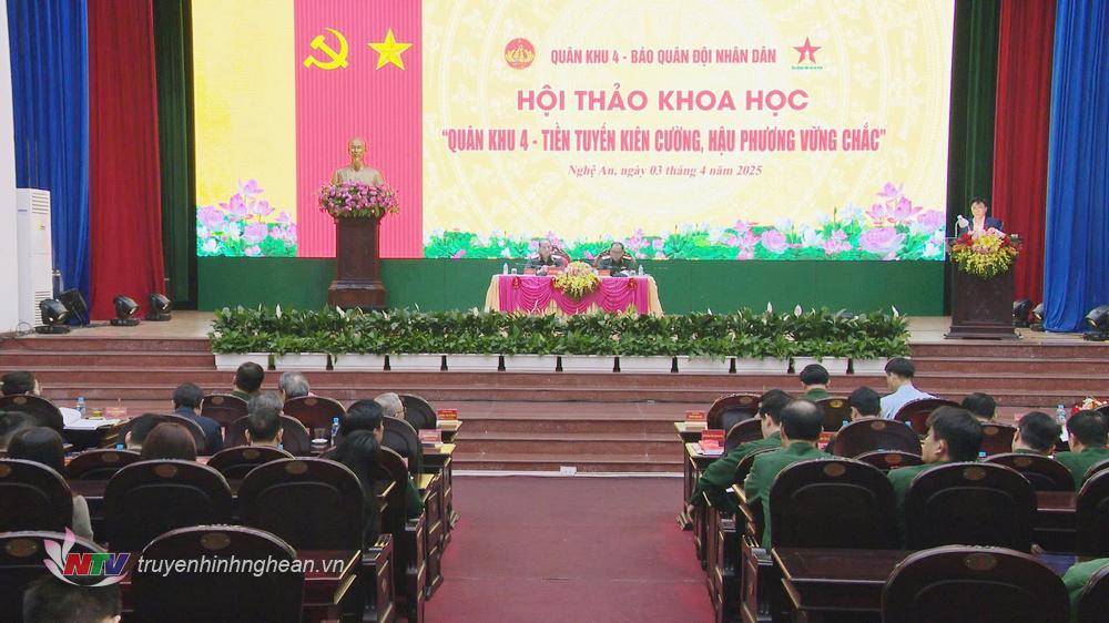 | Đại tá Trịnh Danh Toán - Phó Chủ nhiệm Chính trị Cục Hậu cần - Kỹ thuật Quân khu 4 đọc báo cáo kết quả hoạt động CTĐ, CTCT quý 1. |