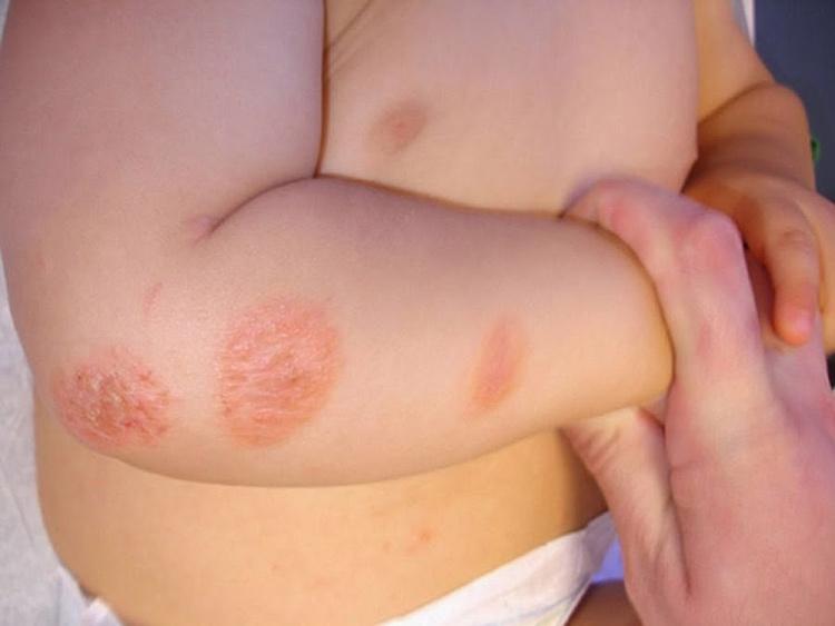 - Chàm tiếp xúc: mảng hồng ban giới hạn rõ kèm theo mụn nước và ngứa.