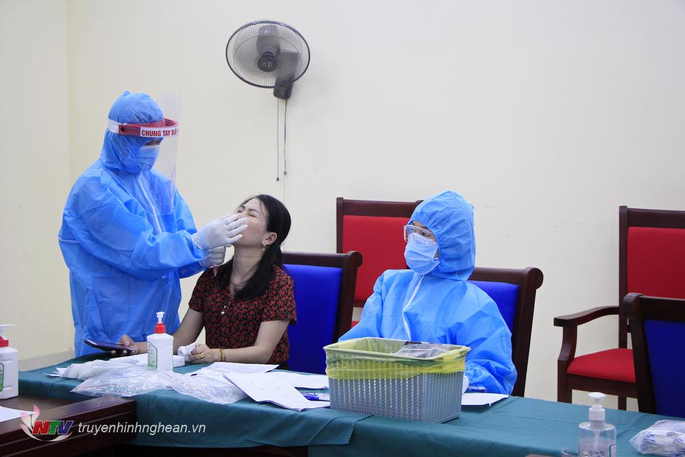 | Ngành y tế Nghệ An lấy mẫu xét nghiệm các trường hợp liên quan tới các ca bệnh. |