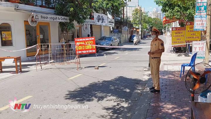 | Lập chốt kiểm soát dịch bệnh COVID-19 tại phường Cửa Nam, TP Vinh. |