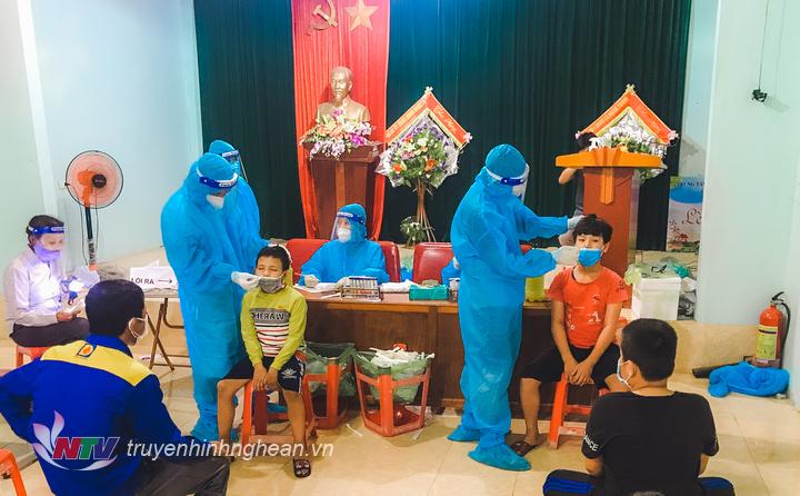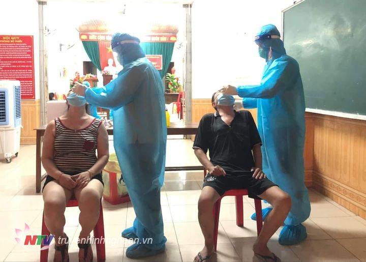 | Lấy mẫu xét nghiệm cho người dân TX Cửa Lò. |