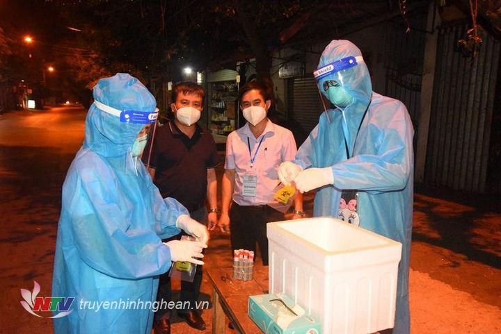 | Khẩn trương lấy mẫu xét nghiệm cho người dân trong đêm. |