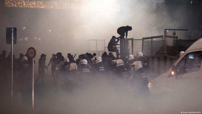 | Các dịch vụ khẩn cấp làm việc trên đường phố sau khi nước đổ lên đường sau vụ rò rỉ thủy cung AquaDom ở trung tâm Berlin. |