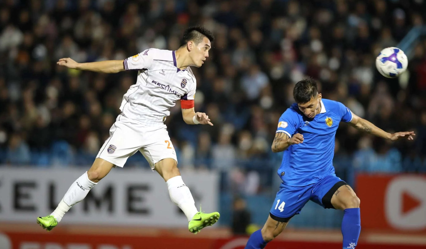 Đến phút 40, Lương Hoàng Nam đón bóng hai sau quả phạt góc. Tiền vệ này rê bóng về cánh trái rồi bất ngờ tạt chân trái xoáy vào vòng 5m50, nhưng Lucao Vinicius đánh đầu vọt xà trong thế không bị kèm. Đội khách tuột cơ hội ngon ăn và phải trả giá ngay sau đó. Đinh Xuân Tiến thoát vào vòng cấm rồi sục bóng bằng má ngoài chân phải vượt tầm với Đình Triệu mở tỷ số cho SLNA.