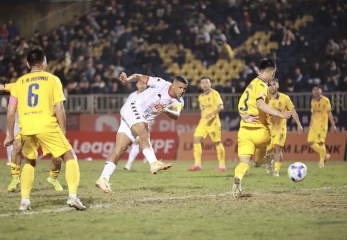 Nhận 2 bàn thua, đội bóng xứ Nghệ gần như đẩy cả đội hình lên tấn công. Phút 89, hàng thủ Bình Dương mắc sai lầm và tạo điều kiện cho Hồ Khắc Ngọc thoát xuống dứt điểm rút ngắn cách biệt xuống còn 1-2.