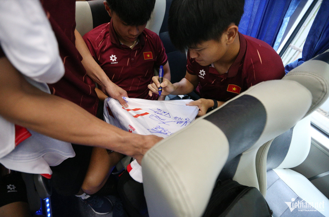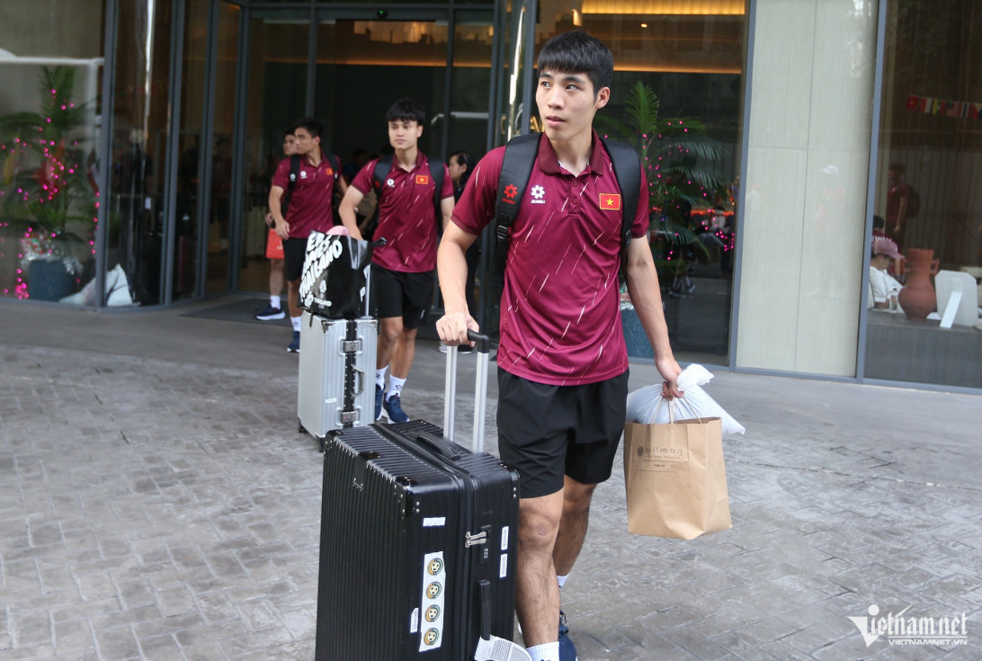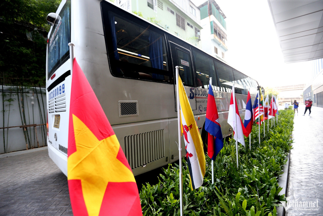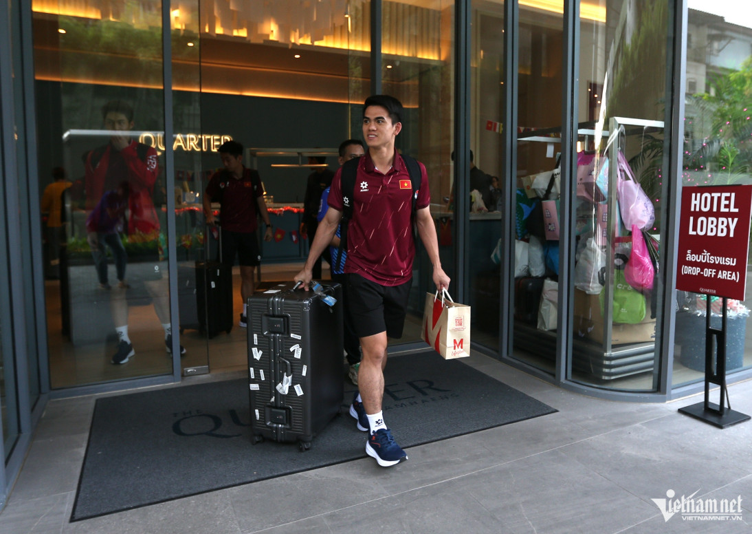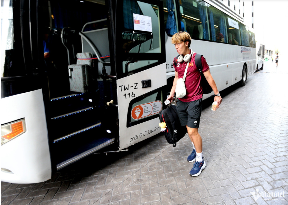 | 12h30 ngày 19/12, các thành viên U22 Việt Nam rời khách sạn tại Bangkok (Thái Lan), di chuyển ra sân bay để về nước. |