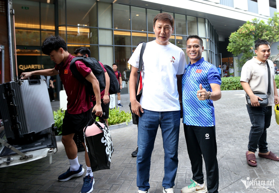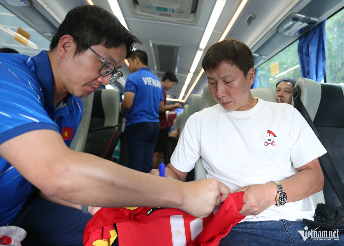 | HLV Kim Sang Sik cũng bận rộn không kém. |