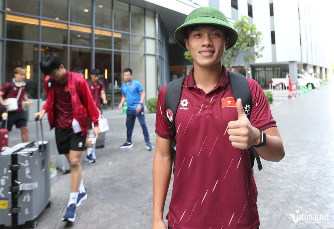 | Tiền đạo Quốc Việt đội mũ cối về nước. |