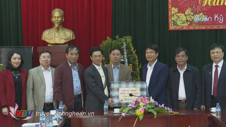 Trước đó, tại xã Quỳnh Lâm huyện Quỳnh Lưu, lãnh đạo Tỉnh ủy, HĐND, UBND, UBMTTQ tỉnh đã đi thăm, tặng quà Tết cho 130 hộ nghèo và đặc biệt khó khăn thuộc các xã: Ngọc Sơn, Quỳnh Mỹ, Quỳnh Thanh và Quỳnh Lâm. 100 suất quà, mỗi suất trị giá 700 ngàn đồng được trao cho hộ nghèo, 20 suất quà, mỗi suất trị giá 1 triệu được trao cho các hộ đặc biệt khó khăn và trao 10 chiếc ti vi cho các hộ dân xã Quỳnh Thanh và Quỳnh Lâm./.