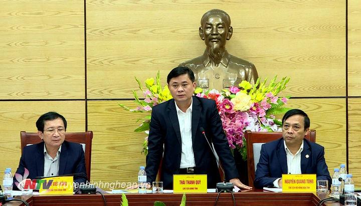 Thượng tướng Nguyễn Văn Được – Chủ tịch Hội CCB Việt Nam cảm ơn sự tiếp đón nồng hậu của tỉnh dành cho đoàn, đồng thời đánh giá cao và chúc mừng những kết quả phát triển kinh tế xã hội mà Đảng bộ và nhân dân tỉnh Nghệ An đã đạt được. Nhân dịp này, Thượng tướng Nguyễn Văn Được đề nghị tỉnh tiếp tục quan tâm hơn nữa đến cán bộ, hội viên cựu chiến binh các cấp trong tỉnh, làm tốt công tác giải quyết chế độ, chính sách với cựu chiến binh, hỗ trợ cựu chiến binh giảm nghèo, vươn lên phát triển kinh tế, nâng cao đời sống vật chất tinh thần, xây dựng tổ chức Hội ngày càng vững mạnh, đóng góp nhiều hơn nữa vào sự nghiệp phát triển kinh tế xã hội của địa phương.