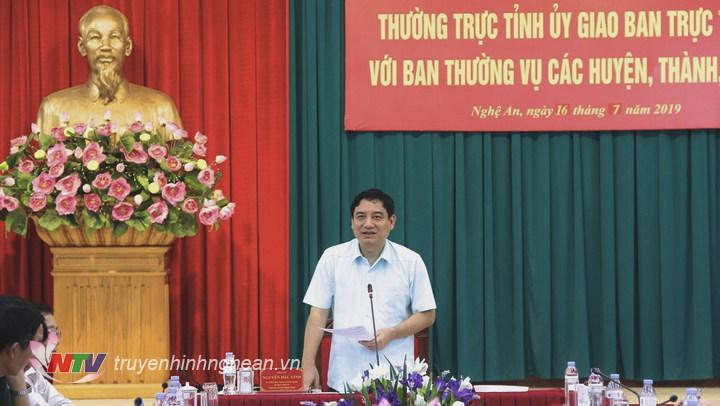 Trước mắt, địa phương tập trung chống hạn cho các loại cây trồng, chuẩn bị phương án phòng chống lụt bão. Đồng thời, không được chủ quan, lơ là về công tác chống dịch tả lợn châu Phi khi Thanh Chương có tổng đàn lợn chiếm phần lớn của tỉnh. Các chỉ số tăng trưởng, cơ cấu, thu nhập bình quân đầu người...của huyện không đạt, Chủ tịch UBND tỉnh Thái Thanh Quý yêu cầu: vì sao không đạt thì cần phân tích, làm rõ để từ đó tham mưu điều chỉnh, tập trung thực hiện. Một số lĩnh vực mới, tiềm năng như: công thương nghiệp, đặc biệt là du lịch Thanh Chương đủ sức trở thành động lực phát triển cho địa phương. Chủ tịch UBND tỉnh đồng tình và yêu cầu các Sở, ngành và huyện phối hợp chặt chẽ để tiến hành các thủ tục đúng quy định triển khai đầu tư xây dựng, hoàn thiện một số công trình hạ tầng giao thông trên địa bàn huyện nhằm tạo điều kiện thuận lợi cho phát triển. Với các dự án chậm tiến độ trên địa bàn, Chủ tịch UBND tỉnh yêu cầu các ngành liên quan đặt lịch làm việc với các nhà đầu tư để chốt về tiến độ. Cần thiết, tỉnh sẽ kết nối với một số nhà đầu tư có tiềm lực, kinh nghiệm để khảo sát, đầu tư có hiệu quả các quy hoạch này. Để chuẩn bị tốt cho đại hội Đảng các cấp, chủ trương sáp nhập xã xóm...Chủ tịch Thái Thanh Quý đề nghị huyện phải quan tâm, chú trọng làm tốt các phương án nhân sự, đảm bảo chất lượng cho sự ổn định và phát triển của địa phương trong giai đoạn tiếp theo./.