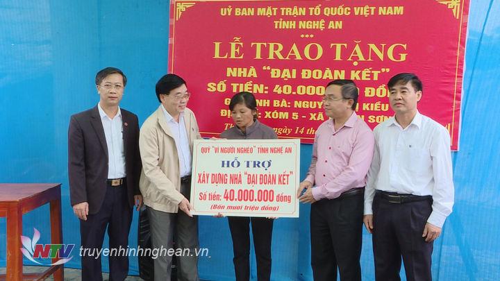Dịp này, Phó Thủ tướng Vương Đình Huệ đã trao tặng cho xóm 50triệu đồng và quà cho 5 hộ gia đình tiêu biểu. Phó Chủ tịch Ủy ban Trung ương MTTQ trao tiền hỗ trợ xây dựng 70 ngôi nhà đại đoàn kết cho 70 hộ nghèo trên địa bàn tỉnh Nghệ An.