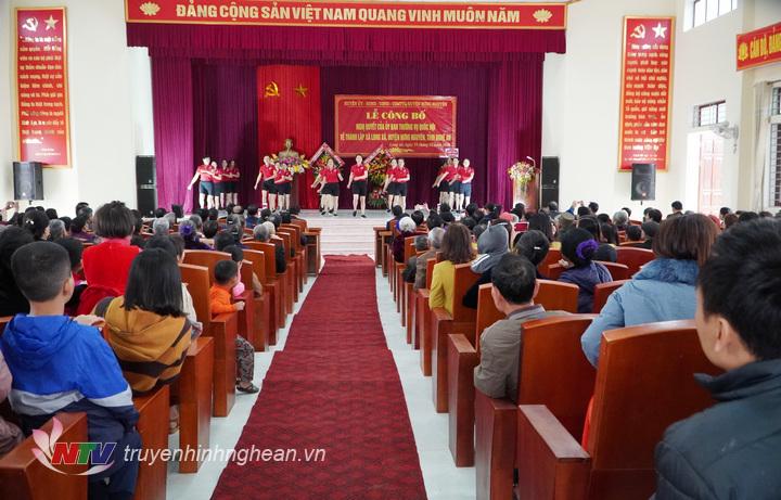 Cụ thể, 3 xã: Nam Trung, Nam Phúc, Nam Cường được sáp nhập thành xã mới có tên Trung Phúc Cường có tổng diện tích tự nhiên 20,46km2 và quy mô dân số 14.100 người. Xã Thượng Tân Lộc mới trên cơ sở sáp nhập toàn bộ diện tích, dân số của 2 xã: Nam Lộc, Nam Tân và 4,10 km2 diện tích tự nhiên, 1.200 người của xã Nam Thượng, tổng diện tích tự nhiên 31,20km2, quy mô dân số 11.300 người. Thị trấn Nam Đàn được nhập 3,20 km2 diện tích tự nhiên, 700 người của xã Nam Thượng và toàn bộ diện tích tự nhiên, dân số của xã Vân Diên và Thị Trấn Nam Đàn, có tổng diện tích tự nhiên 18,70 km2, dân số 20.600người. Cùng với công bố quyết định thành lập xã, thị trấn mới, Nam Đàn cũng đã công bố quyết định các chức danh Chủ tịch, Phó Chủ tịch HĐND; Chủ tịch, Phó Chủ tịch UBND, thành lập UBMTTQ và các tổ chức đoàn thể.