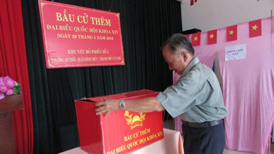 | Ban Tổ chức mang thùng phiếu phụ đến nhà cử tri già yếu, tàn tật.. để cử tri thực hiện quyền công dân. |