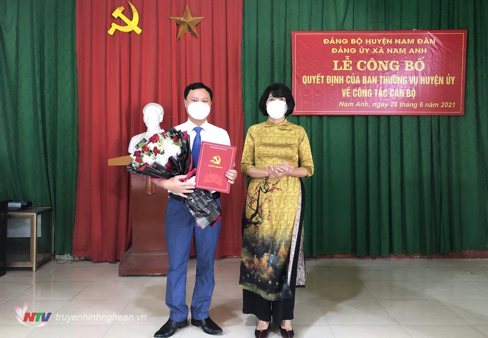 | Tặng hoa chúc mừng đồng chí Vương Quang Minh - Bí thư Huyện ủy được bầu giữ chức vụ Chủ tịch HĐND huyện khoá XX. |
