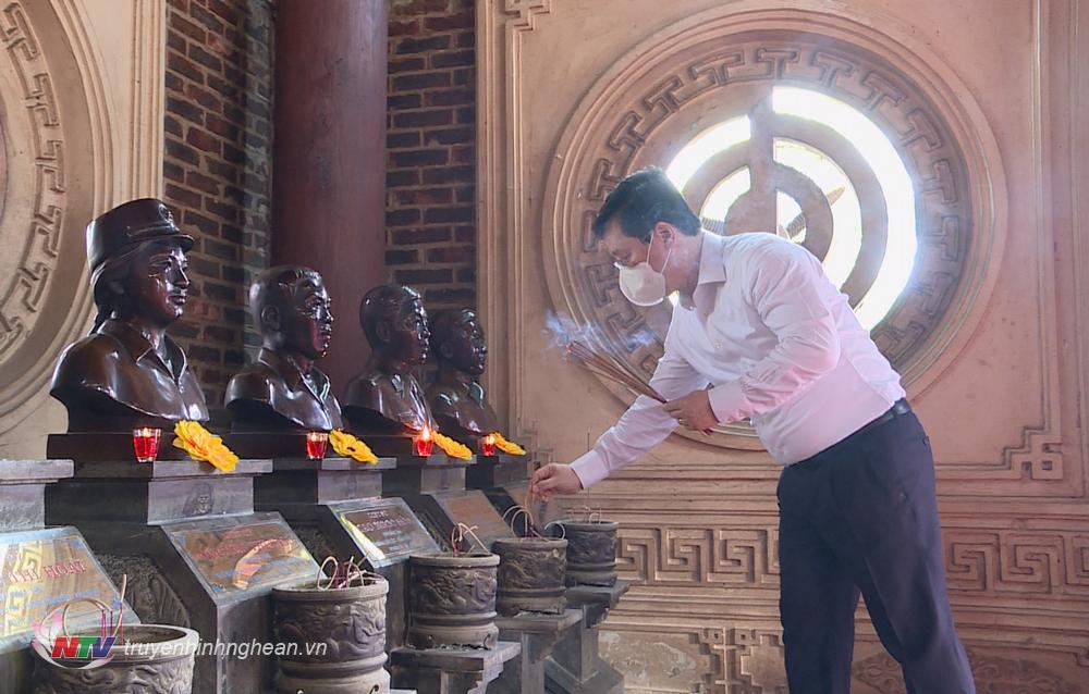 Trong không khí trang nghiêm, thành kính, các đồng chí lãnh đạo tỉnh cùng đoàn công tác đã trang trọng đặt vòng hoa, dâng hương, tưởng niệm, tri ân hơn 1 vạn liệt sỹ từng là cán bộ, chuyên gia, chiến sỹ, thanh niên xung phong trực tiếp chiến đấu, phục vụ chiến đấu ở các mặt trận Đường 9, chiến trường Quảng Trị và làm nhiệm vụ quốc tế trên đất bạn Lào trong suốt cuộc kháng chiến chống Mỹ cứu nước.