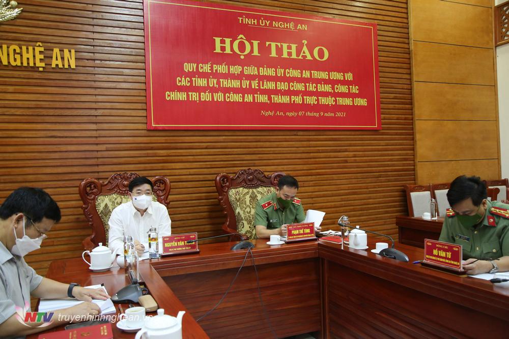 Tại điểm cầu tỉnh Nghệ An, các đồng chí: Thái Thanh Quý - Ủy viên Trung ương Đảng, Bí thư Tỉnh uỷ, Trưởng đoàn ĐBQH tỉnh, Chủ tịch HĐND tỉnh; Nguyễn Văn Thông - Phó Bí thư Thường trực Tỉnh uỷ đồng chủ trì hội nghị. Cùng dự có các đồng chí trong Ban Thường vụ Tỉnh uỷ, lãnh đạo các ban, sở, ngành liên quan.