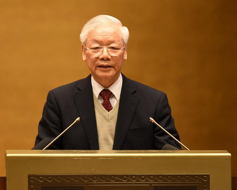 | Tổng Bí thư Nguyễn Phú Trọng và các đồng chí lãnh đạo Đảng, Nhà nước chủ trì Hội nghị. Ảnh: VGP |