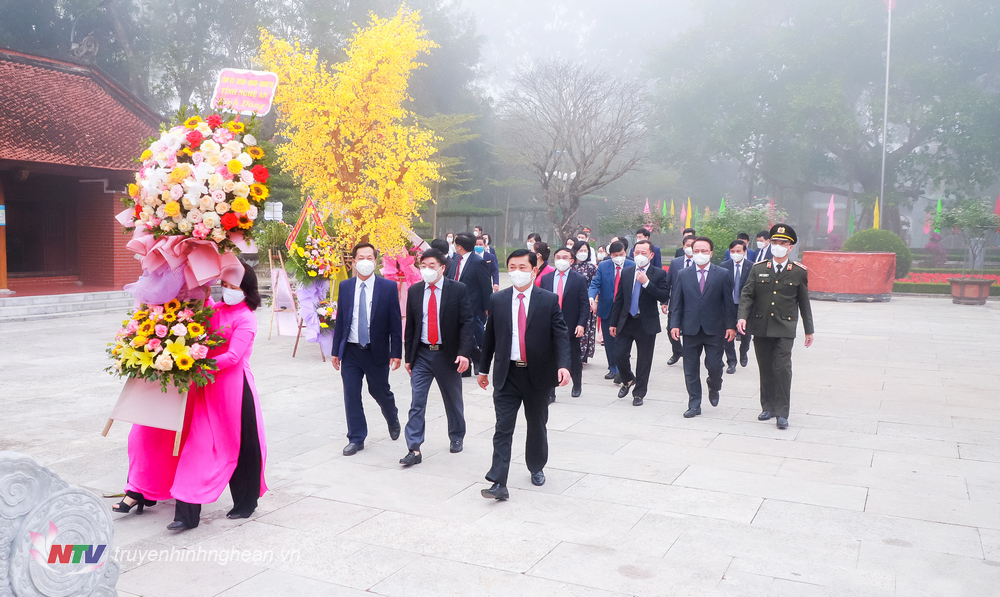 | Chủ tịch Quốc hội Vương Đình Huệ cùng lãnh đạo tỉnh Nghệ An vào dâng hương tưởng niệm Chủ tịch Hồ Chí Minh. |