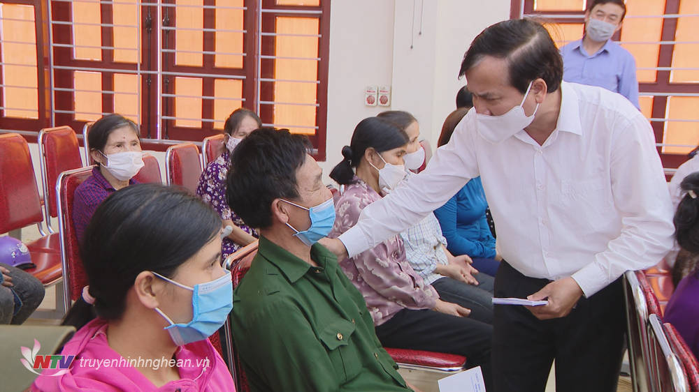 | Đồng chí Nguyễn Đức Thành – Phó Chủ tịch Ủy ban MTTQ tỉnh tặng quà tại Cơ sở Bảo trợ xã hội Thiện Tâm tại xã Đô Thành (Yên Thành). |