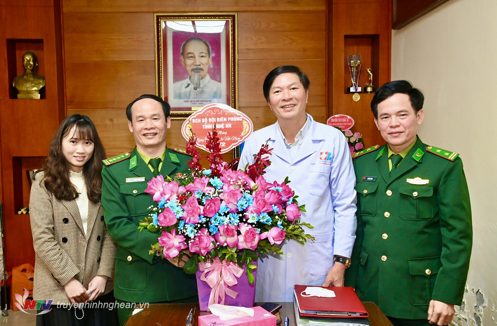 | Bí thư Tỉnh ủy Nghệ An Thái Thanh Quý trao Quyết định, tặng hoa chúc mừng Thượng tá Phan Đại Nghĩa. |