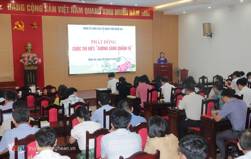 | Đồng chí Nguyễn Thị Thu Hường - Ủy viên BTV, Trưởng ban Tuyên giáo Tỉnh ủy phát biểu tại hội thi. |