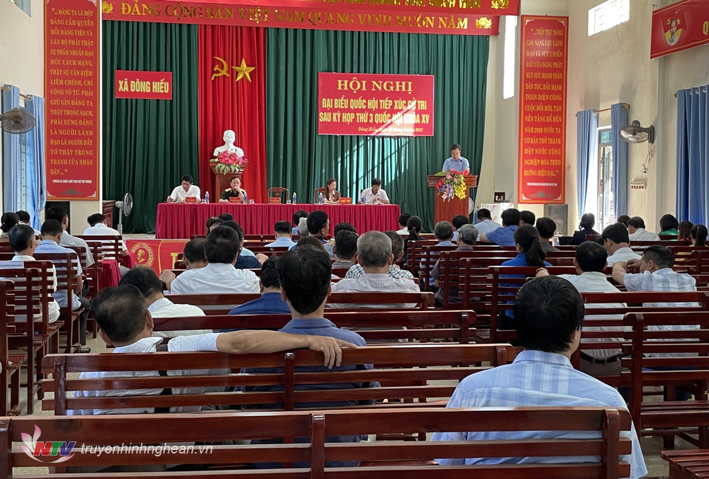 Tại cuộc tiếp xúc cử tri xã Hữu Khuông huyện Tương Dương, thay mặt các đại biểu Quốc hội, đại biểu Trần Nhật Minh - Ủy viên Ủy ban Pháp luật của Quốc hội, Đại biểu Quốc hội chuyên trách đã thông tin về kết quả đạt được tại kỳ họp thứ 3, Quốc hội khóa XV.