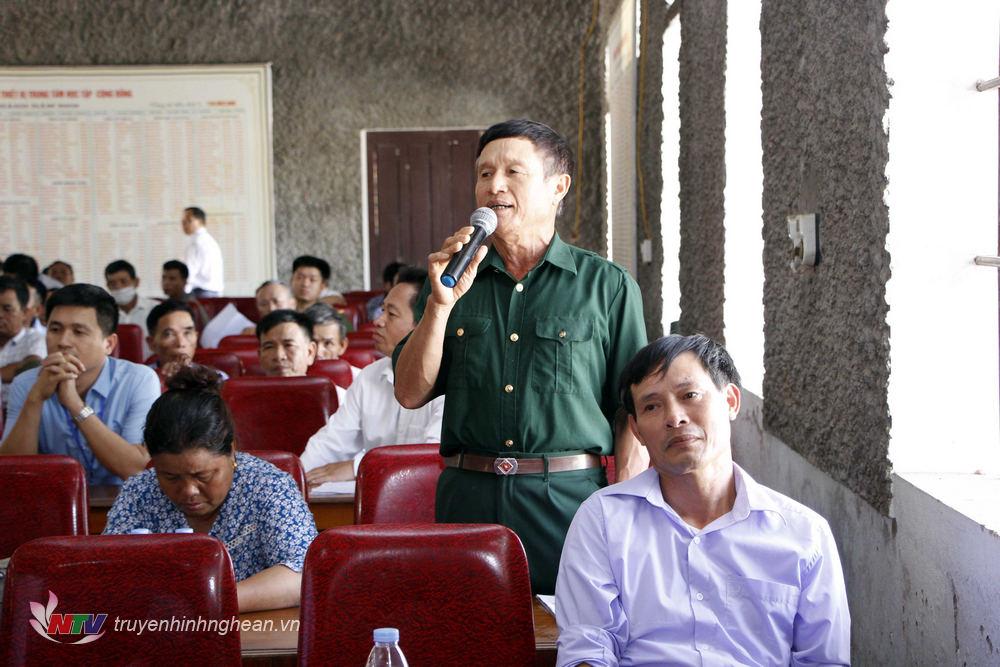 | Cử tri xã Quỳnh Vinh phát biểu ý kiến vê công tác đền bù giải phóng mặt bằng dự án đường cao tốc Bắc Nam và cấp giấy chứng nhận quyền sử dụng đất. |