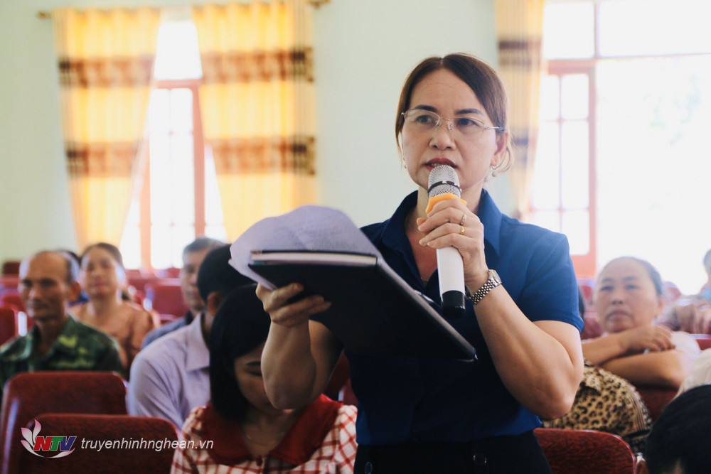 | Đồng chí Nguyễn Thị Thơm – Bí thư Huyện ủy Hưng Nguyên bày tỏ sự biết ơn, trân trọng đối với những đóng góp, cống hiến của đồng chí. |