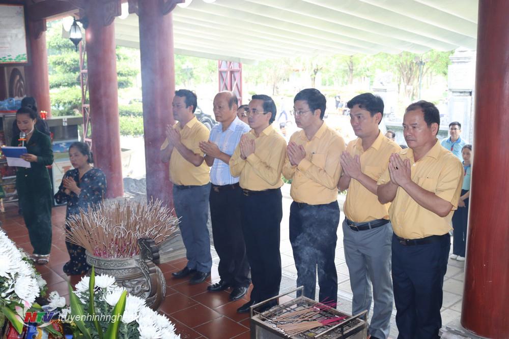 Dịp này, Đoàn đại biểu 3 tỉnh của Lào đã đến thăm quê nội, quê ngoại Bác Hồ, dâng hương tại đền Chung Sơn nơi thờ gia tiên Bác Hồ.