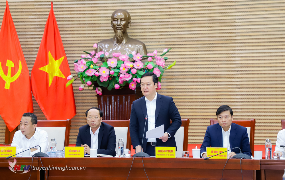 Tiếp và làm việc với đoàn có các đồng chí: Nguyễn Đức Trung – Phó Bí thư Tỉnh uỷ, Chủ tịch UBND tỉnh; Nguyễn Nam Đình – Uỷ viên BTV Tỉnh uỷ, Phó Chủ tịch Thường trực HĐND tỉnh; Bùi Đình Long – Phó Chủ tịch UBND tỉnh.