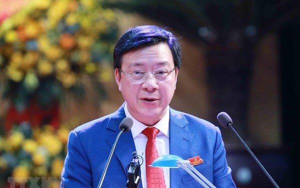 | Phó Tổng cục trưởng Tổng Cục Thuế Phi Vân Tuấn và Trưởng ban Tổ chức Tỉnh ủy Lê Đức Cường tặng hoa chúc mừng đồng chí Trịnh Thanh Hải và đồng chí Nguyễn Đình Đức. |