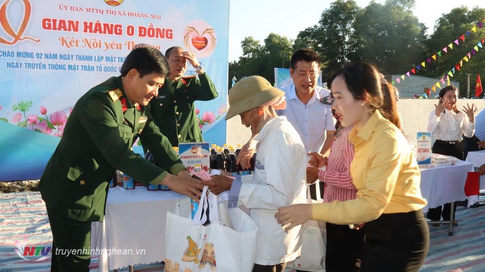 | Các đại biểu tặng quà cho người dân ở làng Phan. |