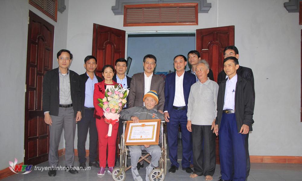 | Phó Bí thư Tỉnh uỷ Hoàng Nghĩa Hiếu và Bí thư Tỉnh đoàn Lê Văn Lương trao quà cho các cựu TNXP. |